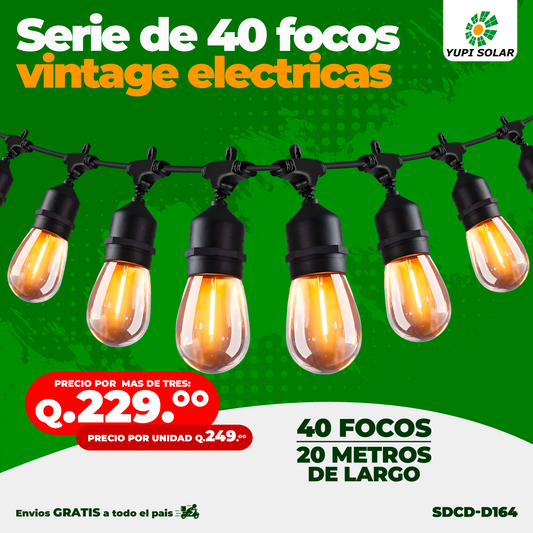 Serie de Luces Vintage Eléctricas de 20 Metros de largo y 40 Focos