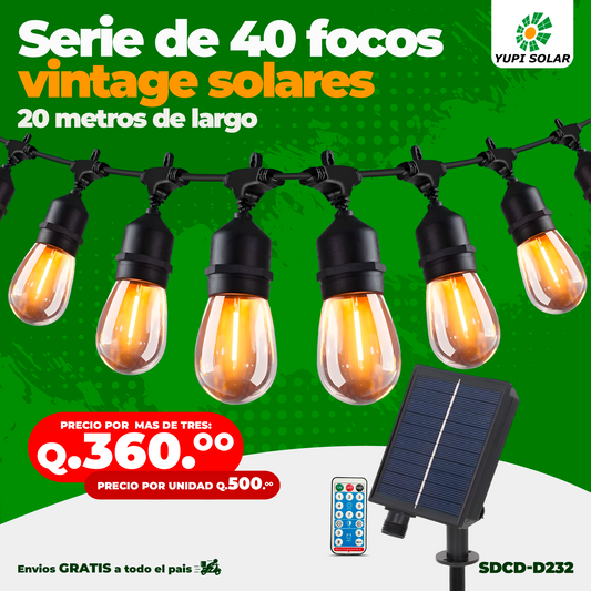 Serie de Luces Vintage Solares de 20 Metros de largo y 40 Focos