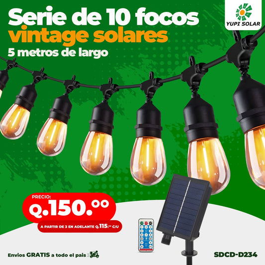 Serie de Luces Vintage Solares de 5 Metros de largo y 10 Focos