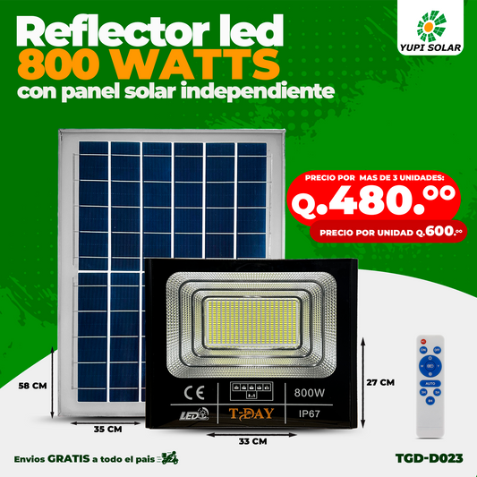 Reflector Led de 800 Watts con Panel Solar Independiente