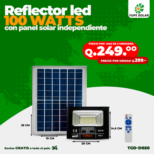 Reflector Led de 100 Watts con Panel Solar Independiente