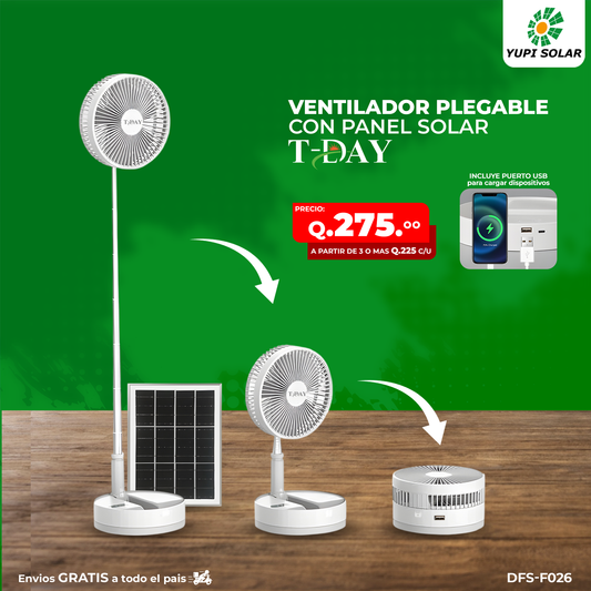 Ventilador con panel solar retráctil con usb y luz led