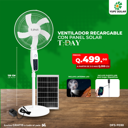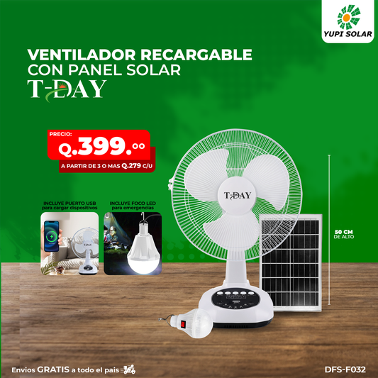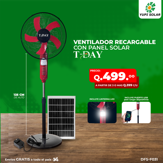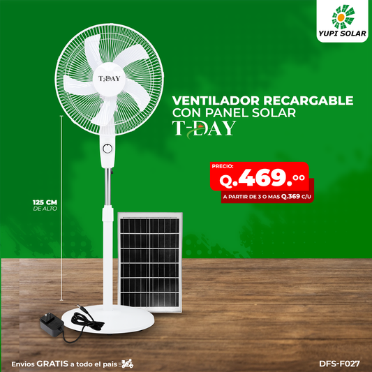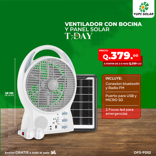 Ventilador con panel solar y accesorios incluidos